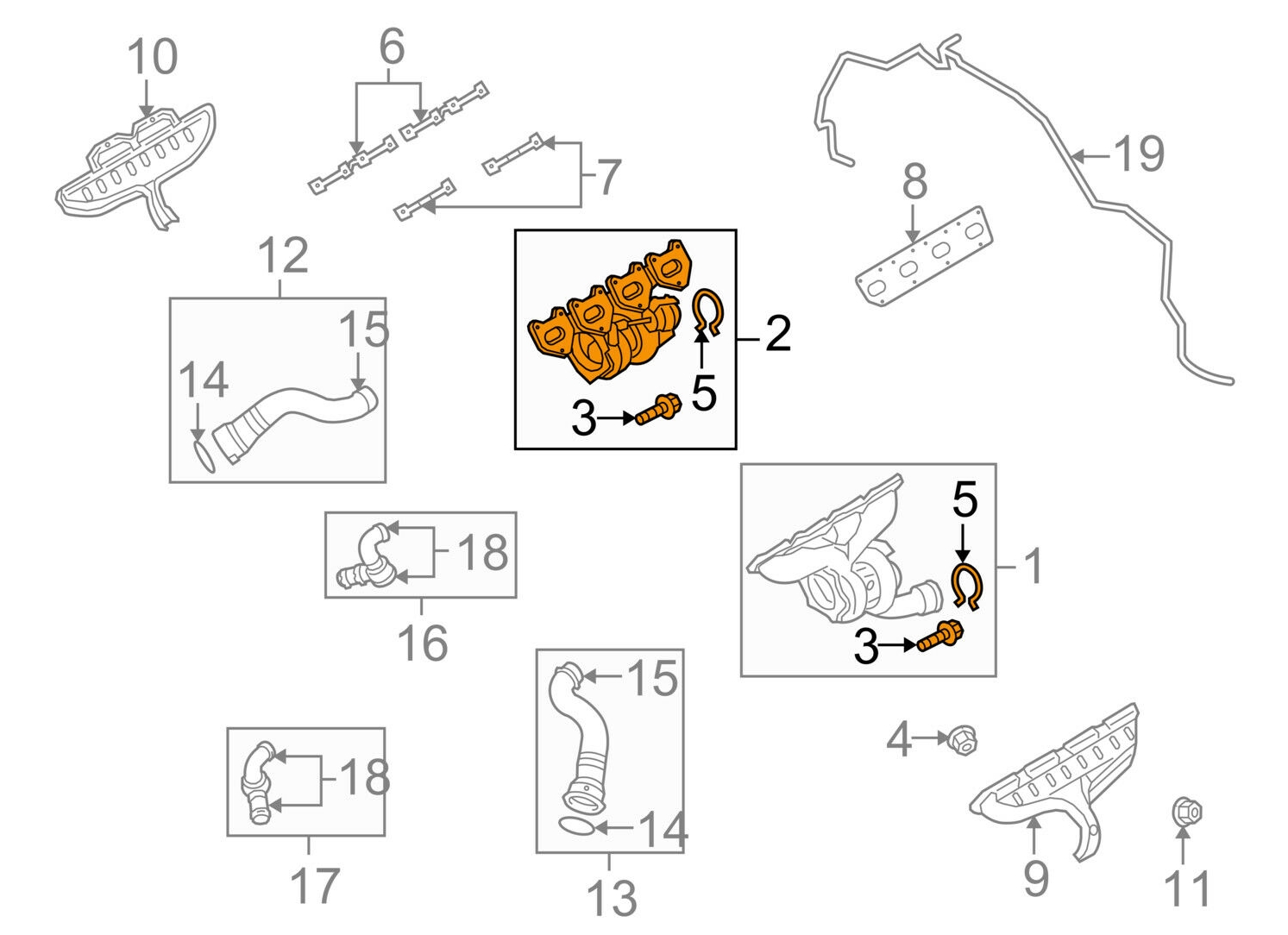 엔진 세부부품명칭 (빨간부분이 터보차저- 2개)
