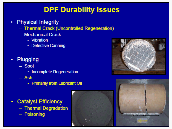연료 및 엔진오일이 연소실에서 연소후 배출가스 형태로 DPF를 지나면서 ash성분들이 축적되어 재생과정을 거치면서 재생과정중 완전히 제거되지 않은 ash성분들이 쌓여 DPF의 효율 및 수명을 좌우하게 됩니다.