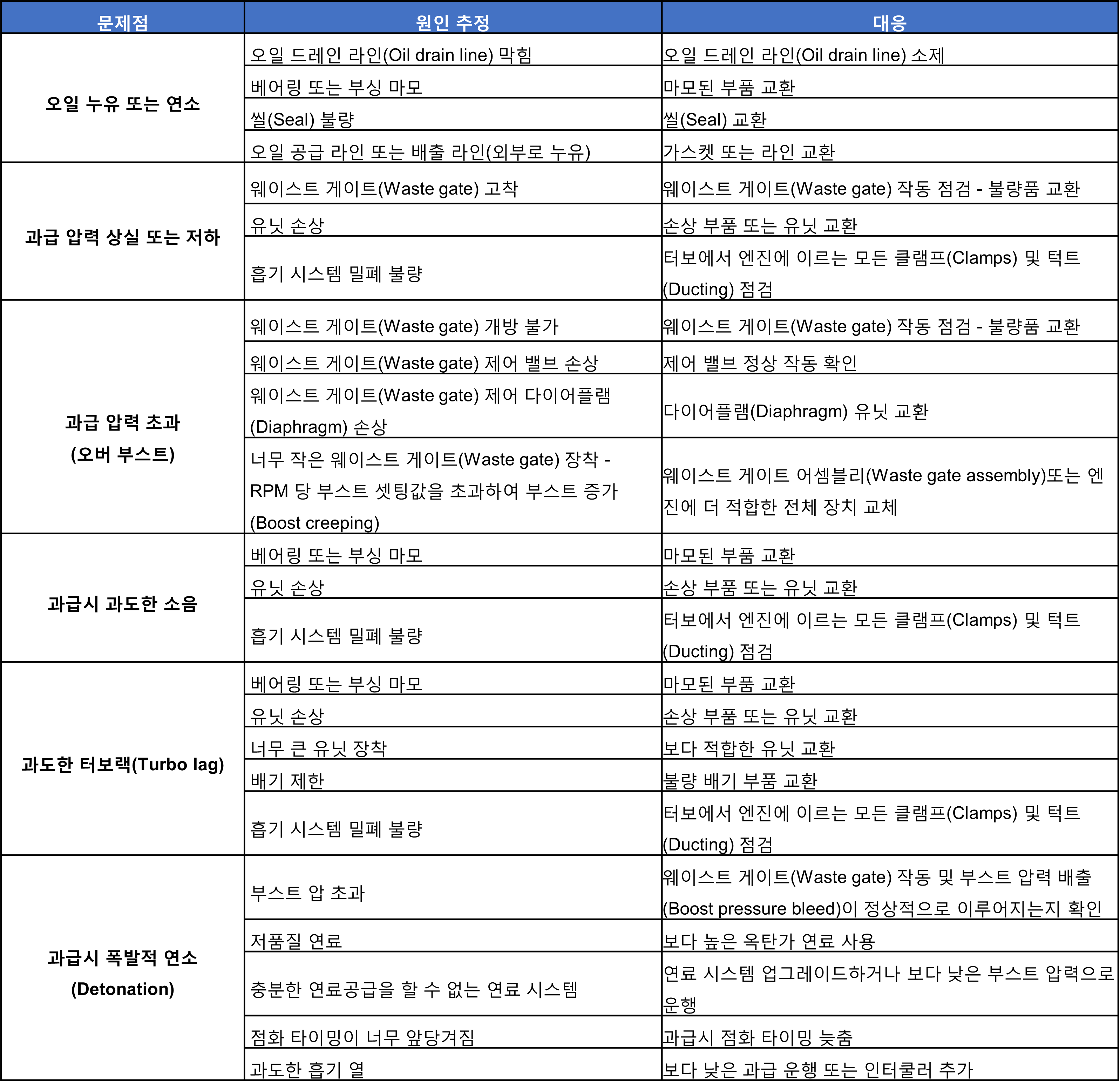 대체적으로 터보고장보다 이런 부분의 고장으로  underboost condition 을 나타내는 경우가 허다합니다.