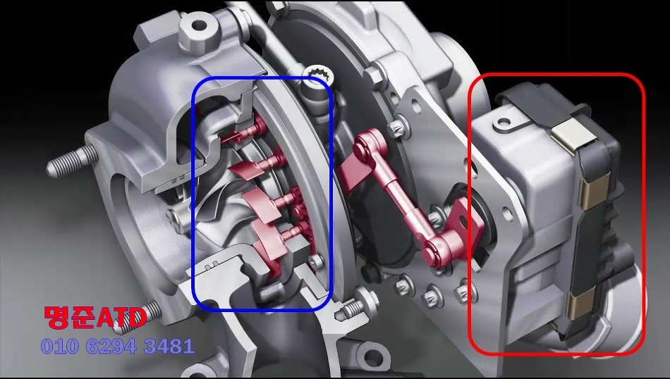 차종별 터보차저 정보/크라이슬러 Jeep Chrysler 크라이슬러 300C 3.0 CRD 터보차저정보<명준 Turbo ATD> 명준 Turbo ATD 2022. 4. 12. 10:15 전자식엑츄레이터고장으로 다른 오류코드가 복합적으로 발생합니다. 터보관련문의: 010 6294 3481 정품신품터보와 터보엑츄에이터 중국산터보, 모조터보,중고터보는 취급하지 않습니다. 전자식엑츄레이터고장이 잘 납니다. 전자식엑츄에이터고장코드는 다음과 같습니다. 공용코드를 보시면 아래와 같습니다. 터보본체고장이거나 엑츄에이터고장입니다.(대개는 엑츄에이터고장) 전자식엑츄에이터는 기본적인 장착세팅이 필요합니다. 이를 START POSITOIN이라고 하는데 무시하고 장착을 하면 처음에는 이상이 없더라도 정상적인 출력이 나오지 않거나 또 다시 고장을 일으킬수 있습니다. P0299 (Boost Pressure Regulation Control Range Not Reached) P0046 (Boost Pressure Circuit Shorted) P0234 (Turbocharger Engine Overboost) 붉은색 표시부분이 전자식엑츄레이터입니다. 증상은 계기판에 경고등표시가 들어오고 시동을 꺼면 잠시 없어졌다가 시동을 켜고 주행을 하면 다시 경고등이 들어옵니다. 일반적으로 2,300 RPM 이상으로 RPM사용이 불가하고 대략 시속120km을 넘기기가 힘듭니다. 반대로 엑추에이터가 완전히 열린 상태로 고장이 나서 고착이 되면 차가 울켱거리는 느낌이 납니다. 아래는 정품 엑츄에이터(made in Germany)-시중에 유통되는 중국산과 기능면에서 다릅니다. 터보도 소모품임을 인지 하셔야 합니다. 대략 20만키로 주행이면 터보차저의 성능이 신품보다 많이 떨어집니다. 터빈의 각종부품이 알게 모르게 상처를 입고 마모가 상당히 정도의 마모가 생기게 됩니다. 터보차저의 구조가 단순해 보여도 초당 3000회의 초고속회전입니다. 엔진스펙입니다. 엔진오일이 9L 이상 들어갑니다. 터보차저가 엔진의 뒤편 위쪽에 위치하고 있습니다. 이 엔진은 크라이슬러 3.0 디젤엔진공용입니다. 300C .그랜드체로키등 뿐만 아니라 벤츠가 개발한 엔진이므로 벤츠모델중 3.0디젤엔진(터보차저는 다릅니다) 모두 이 엔진을 사용한다고 보면 됩니다. 전자식 엑츄레이터가 고장이 잘 납니다. 터보전체를 바꾸는 것보다 위 그림에서 빨간부분에 해당하는 것만 바꾸면 비용절감이 됩니다. 주의할 점이 있습니다. 먼저 터보본체가 아무런 이상이 없는가를 반드시 확인을 해야 합니다. 육안으로 이상여부를 확인하기가 사실상 불가능 합니다. 대개 임펠라부분의 유격이 없으면 이상이 없다고 판단을 하시는데 이는 가솔린터보의 경우는 대체로 타당합니다.(아닌 경우도 많지만...) 디젤터보는 구조가 가솔린터보의 구조보다 복잡합니다. 부스트를 조절하는 베인부분이 추가가 되기 때문입니다. 그리고 이를 조절하는 전자식엑츄레이터와 밀접한 상호작용을 하기 때문에 조금의 마모가 부스트고장코드를 발생시킵니다. 터보본체가 이상이 있어서 전자식엑츄레이터를 고장을 일으켰는데 이를 간과하고 엑츄레이터를 교환하면 얼마가지 못하여 또 고장을 일으킵니다. 따라서 터보본체에 대한 이상유무를 철저하게 사전 검증이 있은 후에 전자식엑츄레이터를 교환해야 합니다. 또 하나는 가격이 비싼것이 가장 큰 이유이겠지만 중고터보를 구해서 장착을 하는 경우입니다. 운이 좋아서 상태가 매우 양호한 중고터보라면 사용이 가능하지만 대체적으로 중고터보의 사용거리나 연식을 보면 터보수명이 거의 다한 것이 태반입니다. 그리고 보관상태에 따라 수명이 급격하게 줄어들게 되고요...저는 절대 중고터보를 추천하지 않습니다. 엑츄레이터 고장은 아래 기판부분이 고장이거나 메카니즘부분의 웜기어가 마모나 고착이 되는 경우가 많습니다. 요즘들어 어디선가 이런 비품이 마구 들어옵니다. 엉성한 전자식엑츄에이터수리입니다. 이건 아니죠... 엔진에 상당한 악영향을 끼쳐을 것으로 생각됩니다. 터보본체고장도 유발하고... 엉터리수리사진 전자기판에 구리스라?...열이 많이 나는 전자부품에 사용하는 열전도 방열구리스도 아니고 .... 일반구리스는 전자부품을 상하게 합니다. 그리고 아래는 중국산 페이크엑츄에이터 (구입하면 후회합니다....) 듀티값으로 각도를 움직이는 기능만 있으며 자체보정기능이 없습니다. 또한 온도센서가 탑재되어 있지 않아 과열시 ecu에 적절한 피드백을 제공하지 못합니다. 부품번호나 제조국가등이 표시되어 있지 않습니다. 중국산 내부 엔진 뒤면 각부분 센서명칭 정비시 한번쯤은 보아야 할 부분입니다. 부스트압력센서 원인은 그림과 같습니다. 코끼리코모양호스도 잘 찢어집니다. 그리고 스웰모터는 반드시 확인이 필요합니다. 스웰모터부분이 고장이 많아 나는것으로 알고 있습니다. . 터보아래쪽에 위치해서 공임이.... 보통 계기판에 번개불 모양의 경고등이 들어옵니다. 스웰모터사진 핀이 잘 부서지죠... 진단기상으로 나타나는 오류코드는 대체로 아래와 같습니다. 확신은 하지 마세요.. 대체로 스웰관련부품을 교환하면 아래의 Glow Plug 코드는 대부분의 경우 자동으로 삭제가 됩니다. 전자식 엑츄에이터고장시에도 동시에 뜨는 오류코드입니다. 괜한 부품을 교환하는 우를 범하는 경우가 있습니다. P2015 