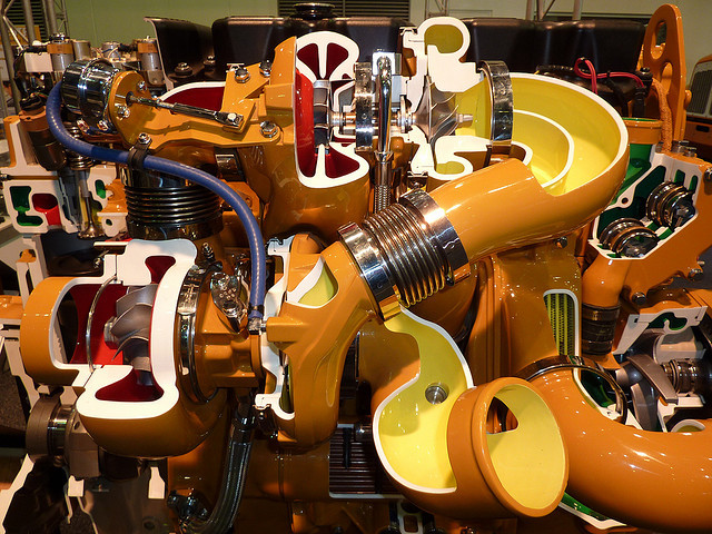 엔진사진을 보시면 엔진 옆면의 앞쪽부분에 터보가 장착되어있습니다.