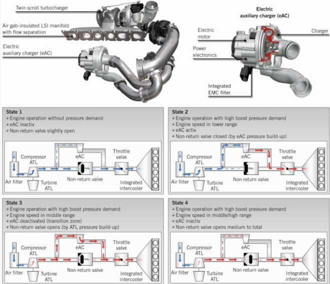 차종별 터보차저 정보/벤츠 Mercedes-Benz BENZ AMG CLS53 3.0L M256.930 직렬 가솔린 6기통 차량 터보차저 정보<명준 Turbo ATD> 명준 Turbo ATD 2025. 9. 10. 14:54 M256 3.0L 직렬가솔린엔진의 터보차저는 터보 엑츄에이터 고장 및 오일누유가 주 고장 원인입니다. 터보관련문의: 010 6294 3481 정품신품터보와 터보엑츄에이터 중국산터보, 중고터보는 취급하지 않습니다. 차대번호로 문의을 하면 보다 상세한 정보를 제공할 수 있습니다. Cylinder block material Aluminum Cylinder head material Aluminum Fuel type Gasoline Fuel system Direct Injection Configuration Inline Number of cylinders 6 Valves per cylinder 4 Valvetrain layout DOHC Bore, mm 83.0 mm (3.27 in) Stroke, mm 92.0 mm (3.62 in) Displacement, cc 2,999 cc (183 cu in) Type of internal combustion engine Four-stroke, turbocharged Compression Ratio 10.5:1 아래는 유량을 제어하는 dv밸브 작동원리 아래는 전자식 터보차저의 작동 시컨스입니다. 엔진 저속시 높은 부스트 압이 형성되기 까지 터보렉이 발생할 수 있는데, 이때 전자식 보조 터보인 eAV가 작동하여 터보렉 없는 부드러운 가속을 유도합니다. 터보차저 사진 아래는 전자식 터보차저(eAV) 부품도 공유하기 게시글 관리 MJATD 명준터보 - 정품터보차저 전문판매점 '차종별 터보차저 정보 > 벤츠 Mercedes-Benz' 카테고리의 다른 글 BENZ S400/450/CLS400 가솔린 6기통 수입차터보고장정보<명준 Turbo ATD> (1) 2025.08.10 벤츠 S400d( OM656) 3.0디젤 터보차저정보<명준 Turbo ATD> (0) 2025.07.21 벤츠 E200 2.0 가솔린 터보차저정보 <명준 Turbo ATD> (0) 2024.11.07 벤츠 GLB 200D (2018년 이후) 2.0 디젤 터보차저정보 <명준 Turbo ATD> (1) 2024.10.28 벤츠 CLA 45 AMG(2020년 이후) 2.0가솔린 터보차저정보 <명준 Turbo ATD> (0) 2024.08.03 '차종별 터보차저 정보/벤츠 Mercedes-Benz' Related Articles BENZ S400/450/CLS400 가솔린 6기통 수입차터보고장정보<명준 Turbo ATD> 벤츠 S400d( OM656) 3.0디젤 터보차저정보<명준 Turbo ATD> 벤츠 E200 2.0 가솔린 터보차저정보 <명준 Turbo ATD> 벤츠 GLB 200D (2018년 이후) 2.0 디젤 터보차저정보 <명준 Turbo ATD>
